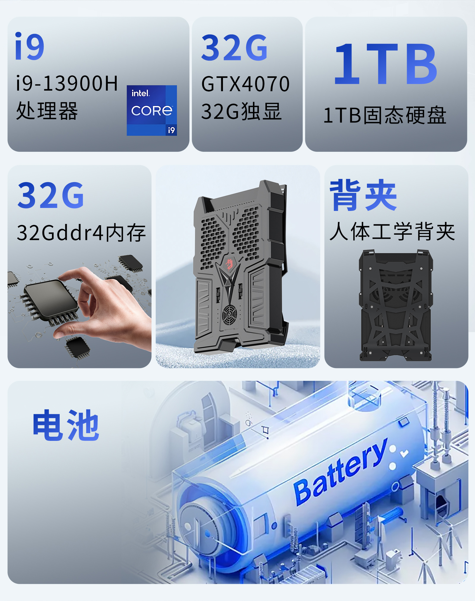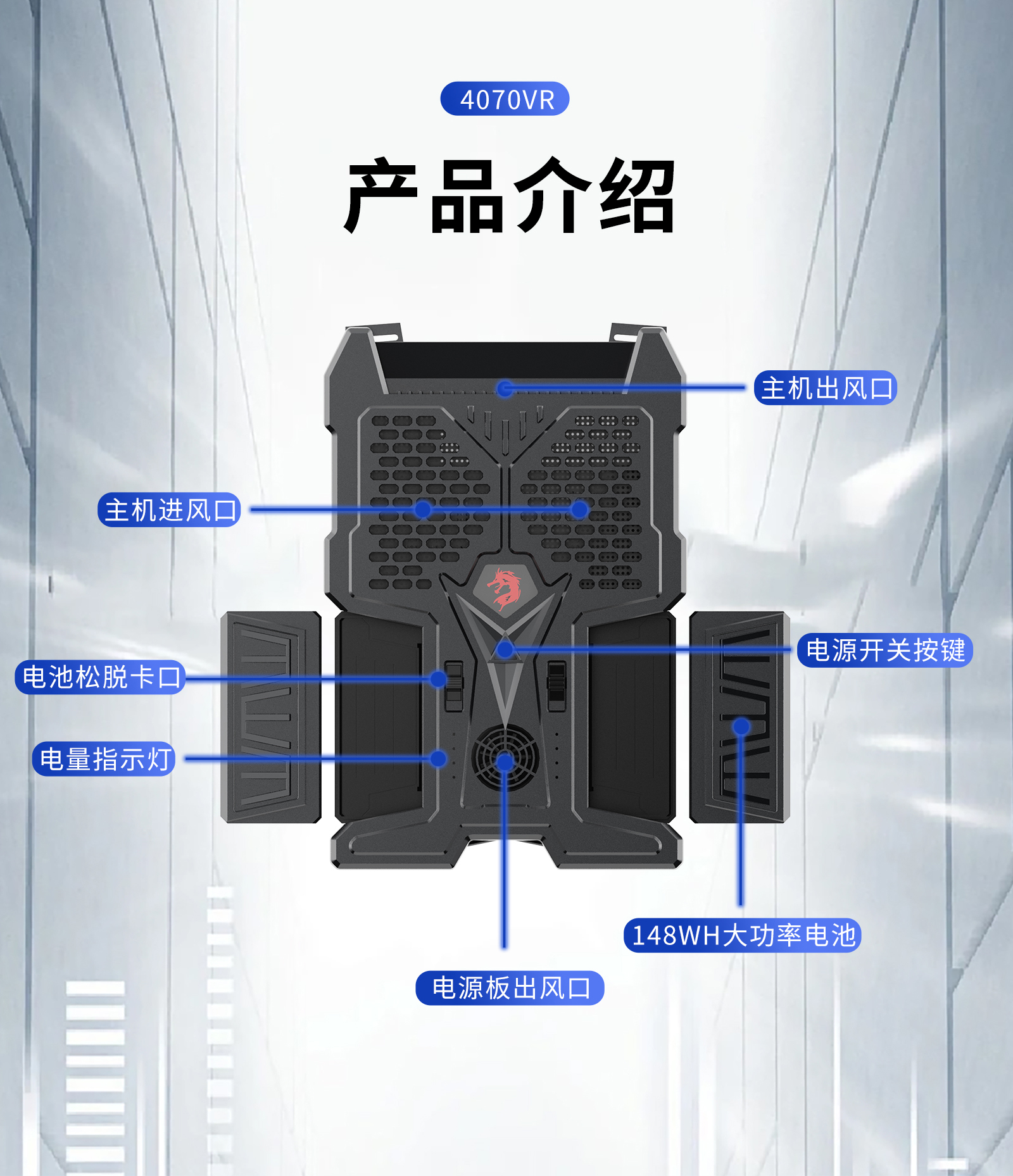 YDTDVR-Hero 4070背包電腦便攜移動(dòng)主機(jī)VR主機(jī)大空間走動(dòng)體感游戲主機(jī)